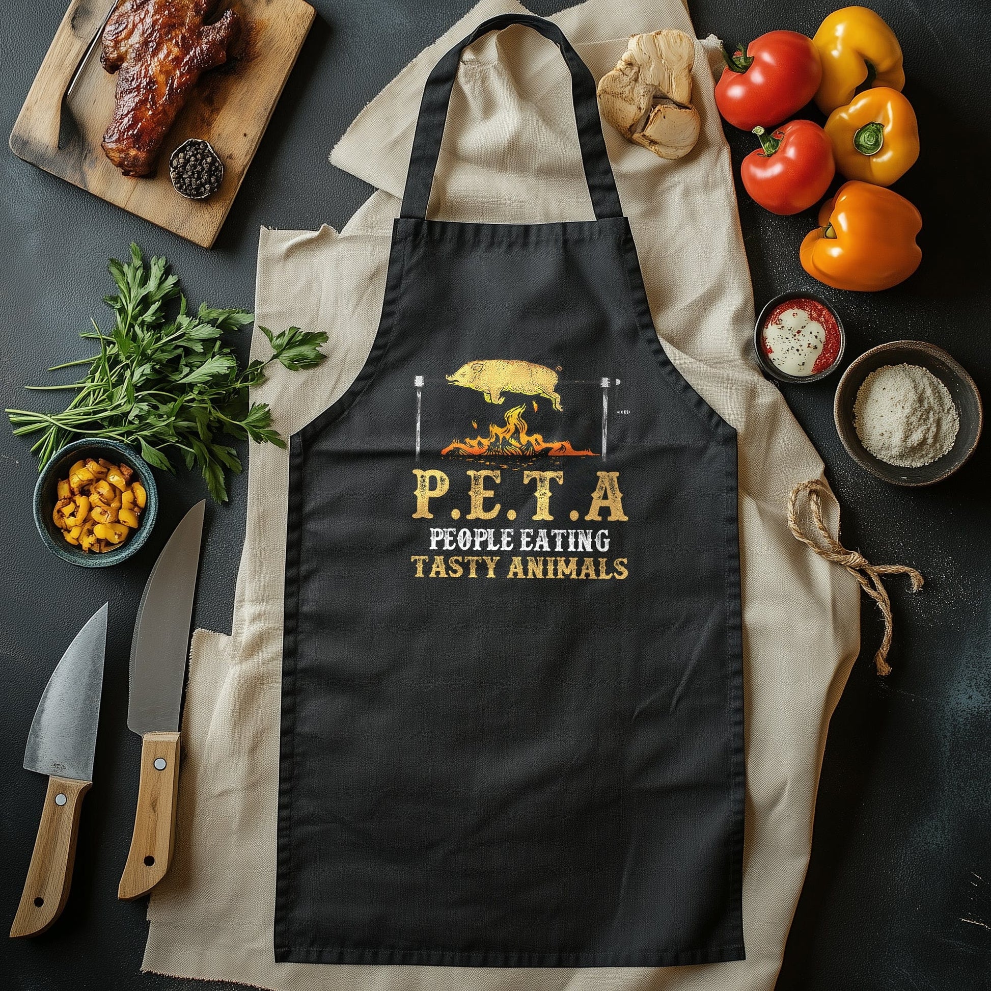 BBQ T-Shirt (12) - Purr-fectly Funny Cat with Knife! 100% Cotton, Unisex Design. For grill masters and feline fanatics!